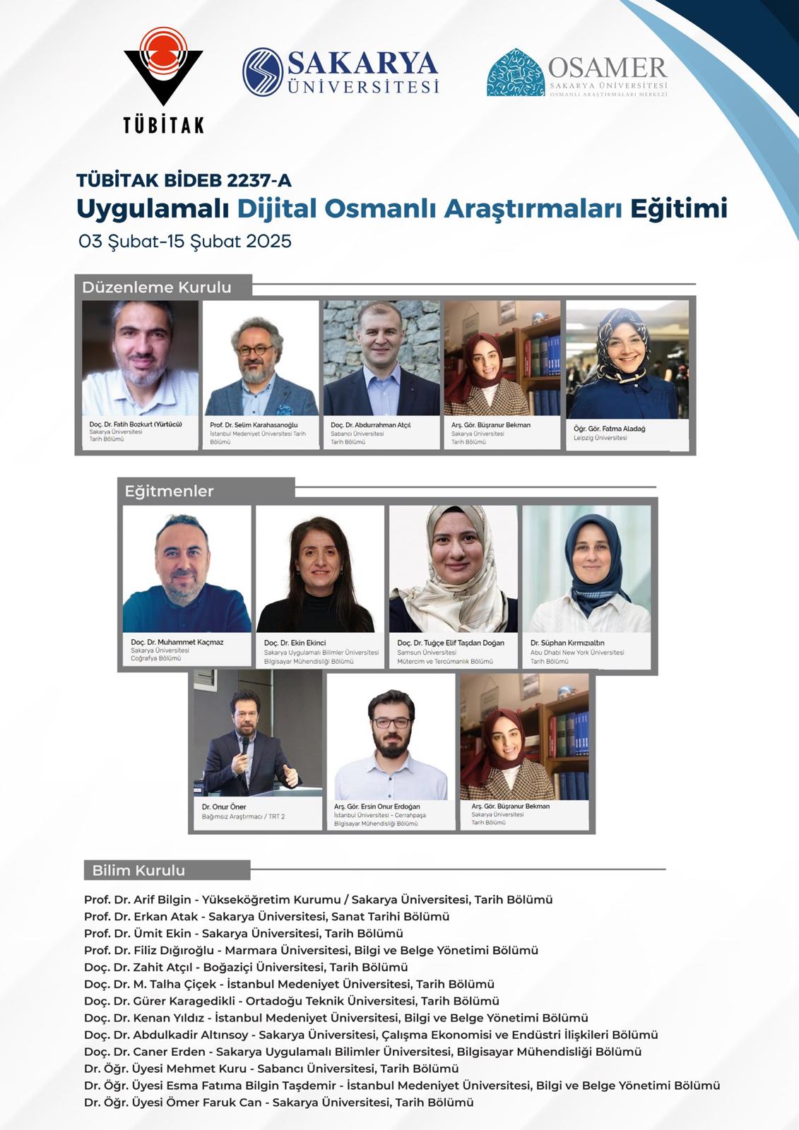 Bölüm öğretim üyemiz Doç. Dr. Ekin Ekinci'ninde eğitmen olarak katılacağı, Uygulamalı Dijital Osmanlı Araştırmaları Eğitimi, 3-15 Şubat 2025 tarihleri arasında gerçekleştirilecektir. Galeri