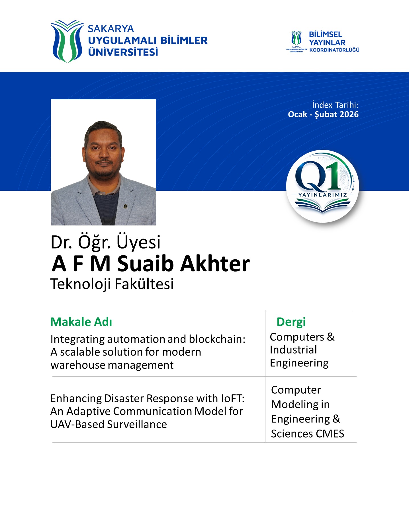 Bölümümüz öğretim elemanlarının, SSCI ve SCI Expanded kapsamındaki Q1 ve Q2 çeyreklik dilimlerde yer alan dergilerde Ocak–Şubat 2026 döneminde yayımlanan bilimsel çalışmaları, Bilimsel Yayınlar Koordinatörlüğü tarafından hazırlanan “Bilimsel Araştırma Bilgi Anketi” doğrultusunda kamuoyu ile paylaşılmıştır.